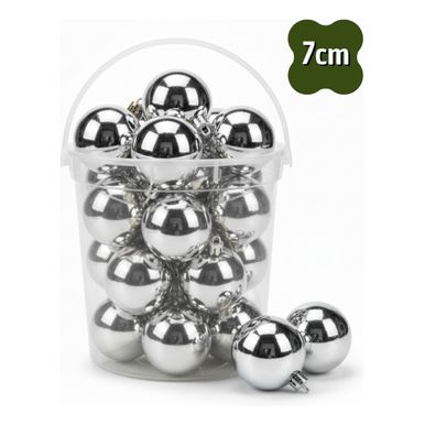 Kit 18 Bolas de Natal Lisa Brilhante Prata com 7cm Premium