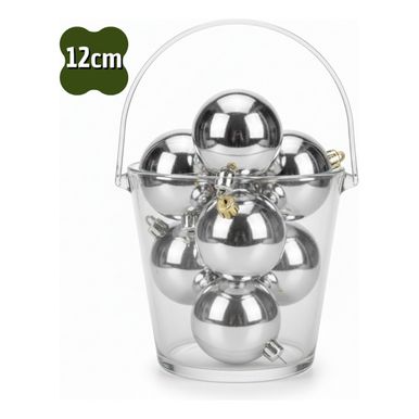 Kit 6 Bolas de Natal Lisa Brilhante Prata com 12cm Premium