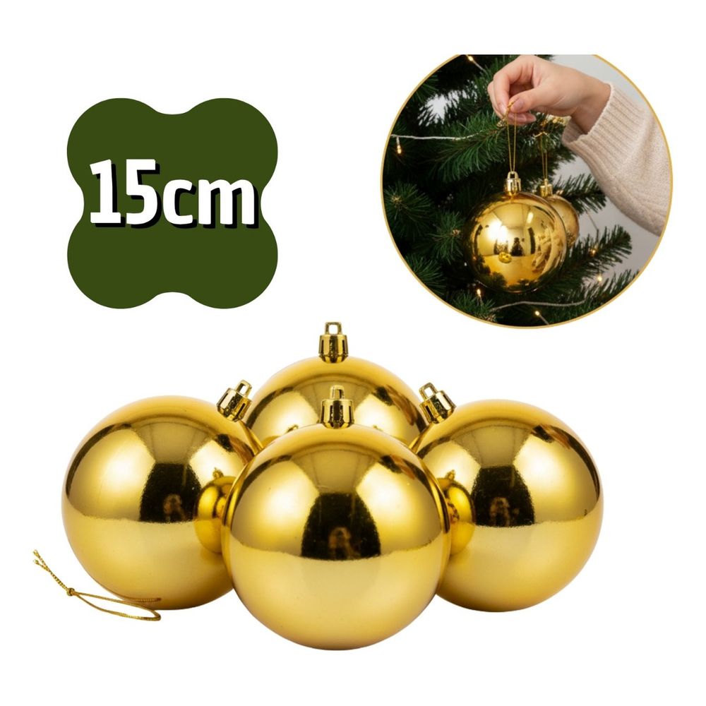Kit 3 Bolas de Natal Lisa Brilhante Ouro com 15cm Premium