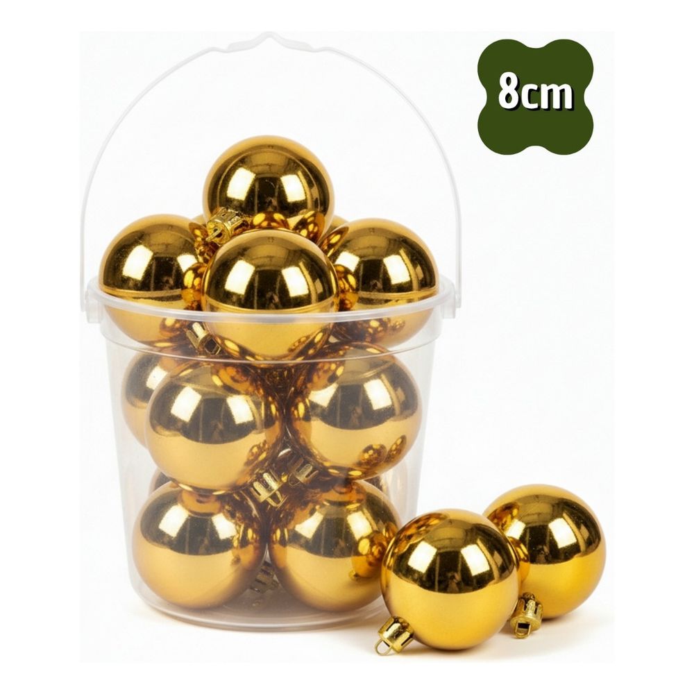 Kit 24 Bolas de Natal Lisa Brilhante Ouro com 8cm Premium - OURO 8CM