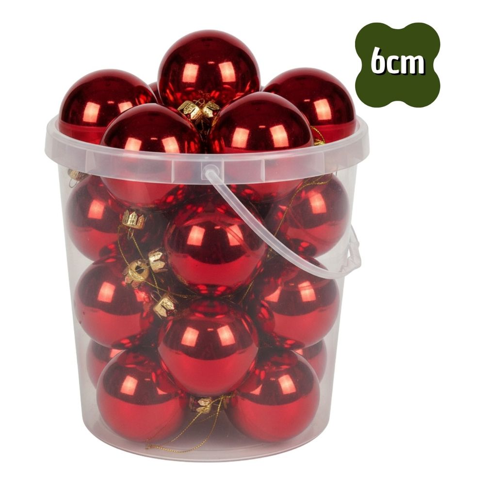 Kit 24 Bolas de Natal Lisa Brilhante Vermelha com 6cm Premium - VERMELHA 6CM