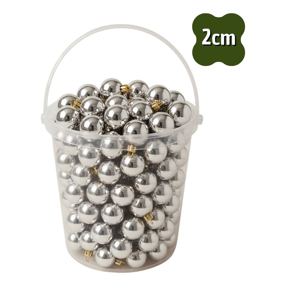 Kit 72 Bolas de Natal Lisa Brilhante Prata com 2cm Premium - PRATA 2CM