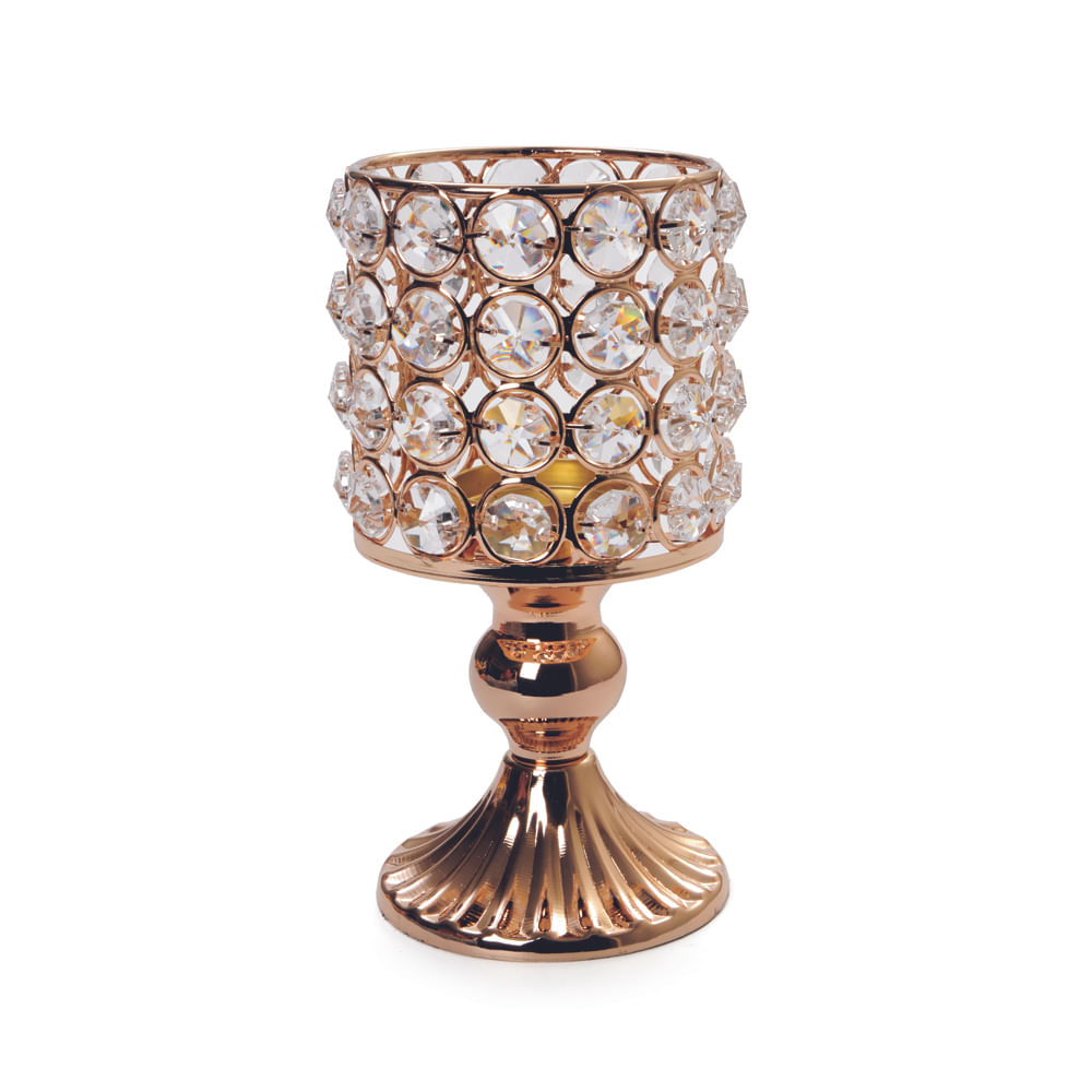 Porta vela metal Dourado com cristais de vidro, alt 17 cm - Medidas: Alt. 17,00 x Diam. 8,00 - Embalagem de Venda: PT C/1 UN - Cor: Dourado - Composto por: 40% cristal k9 60% metal - Instrução de limpeza: limpar com pano macio e seco - Categoria: DECORATIVOS - Sub Categoria: BUBBLE